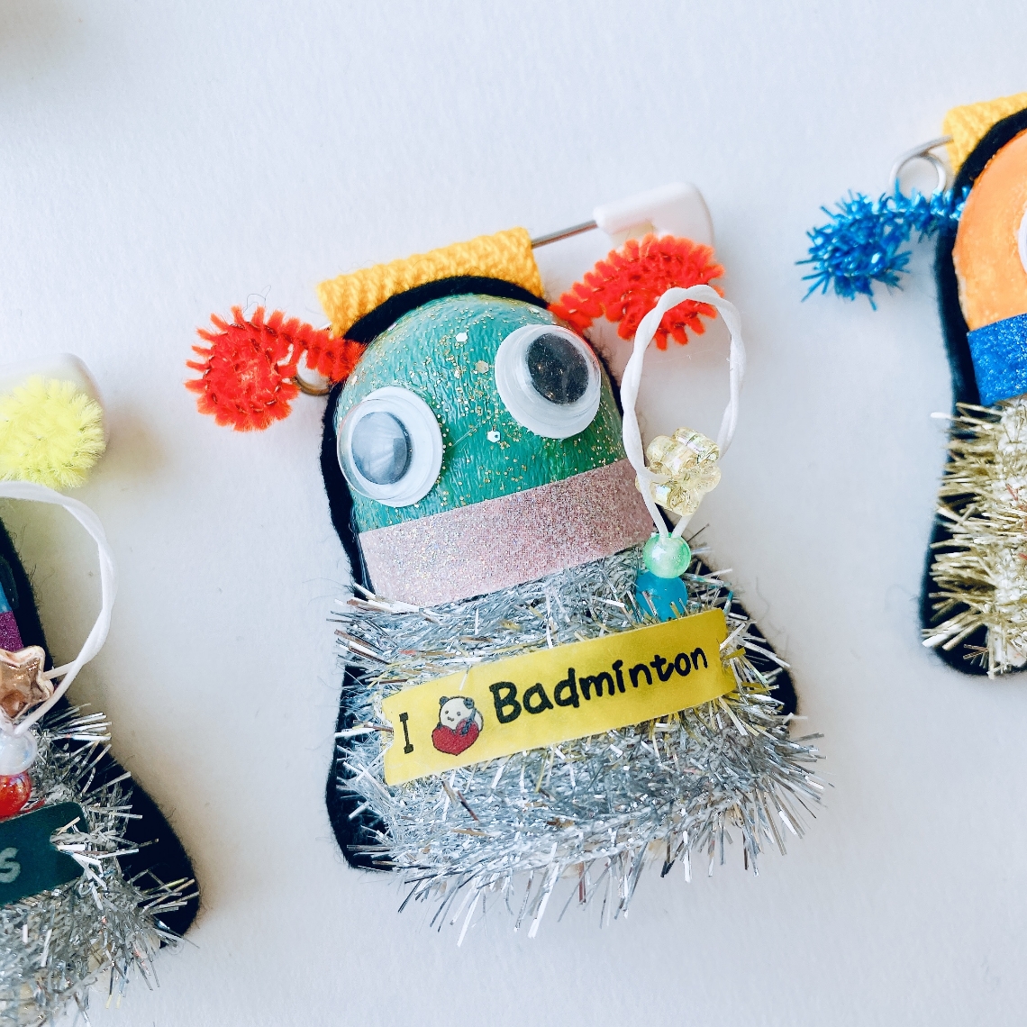 バドミントンのシャトルをアレンジして生まれた、不思議でかわいい宇宙人「ハリー」。 キラキラのボディに大きな目、個性的なアンテナがチャームポイントです。 試合や練習を楽しく盛り上げる、唯一無二のお守り的存在です。