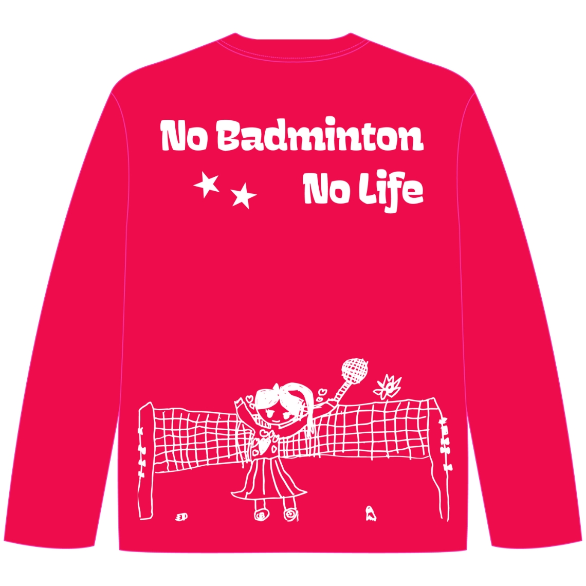 前面にはチーム名「Team Harris」、背面にはバドミントン愛を叫ぶ「No Badminton No Life」の文字と、キュートなイラストを大胆にプリント。